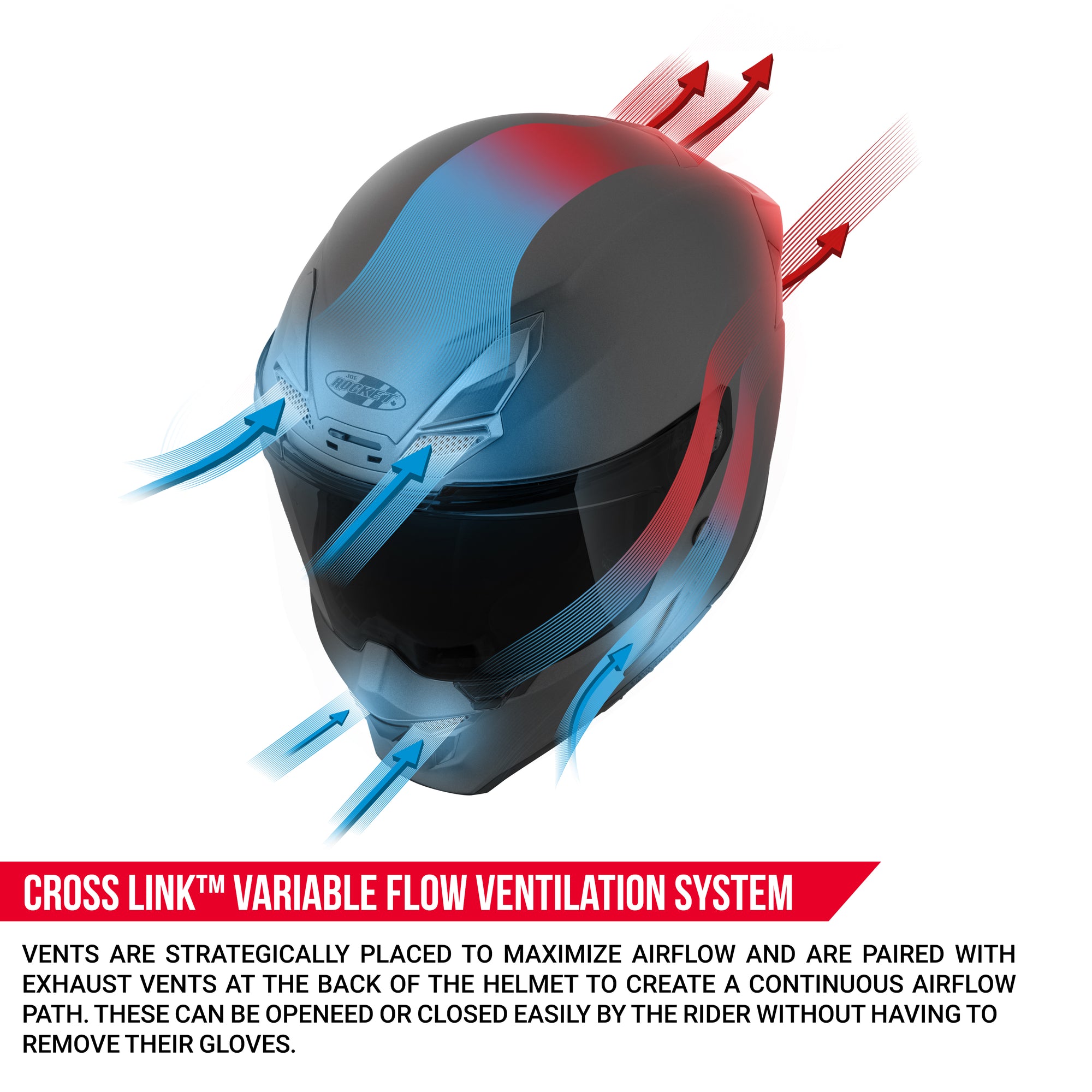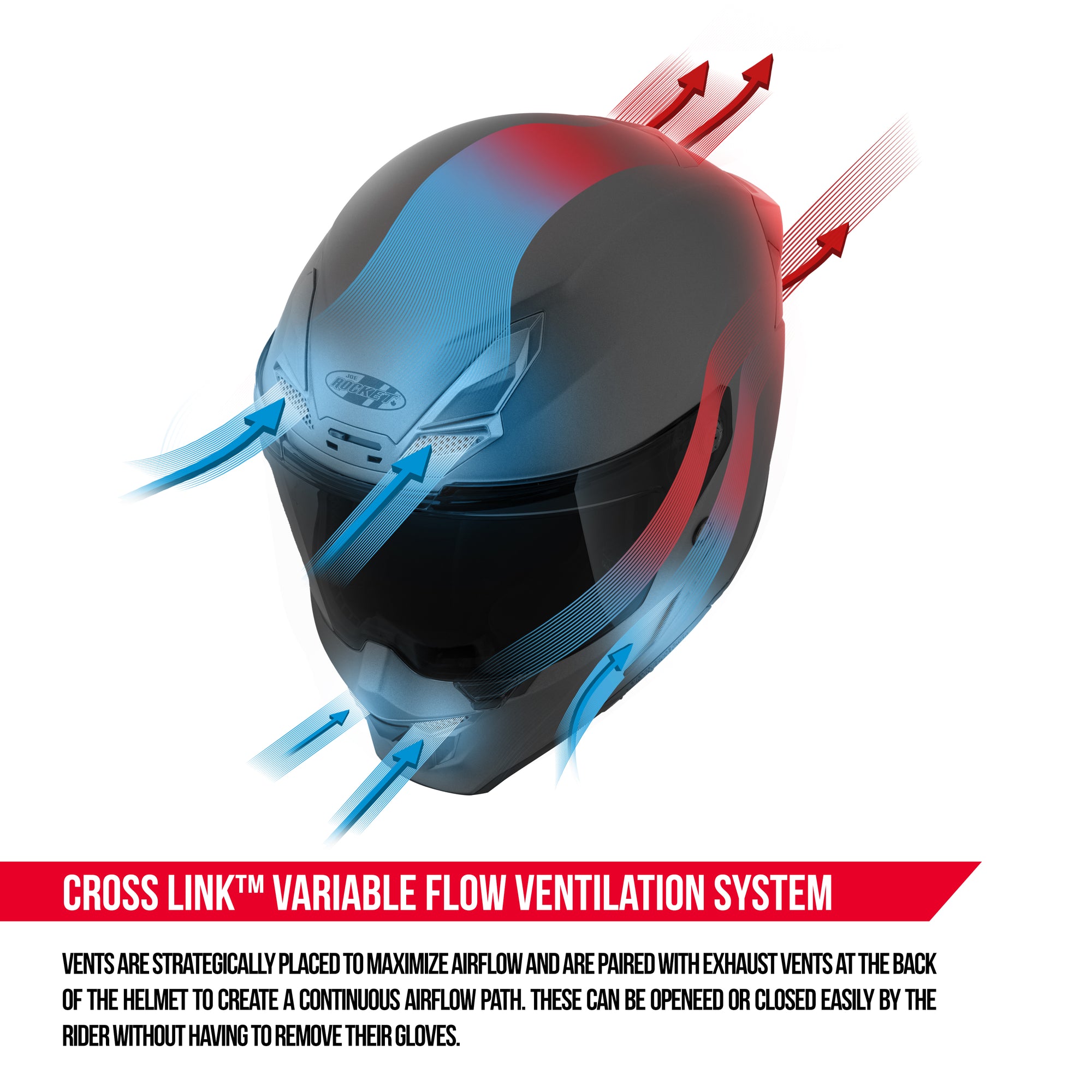 The RKT 240-Series helmet features a Cross Link™ Variable Flow ventilation system with 10 points of ventilation. 6 intake vents in the front the helmet with 4 exhaust vents in the back of the helmet.