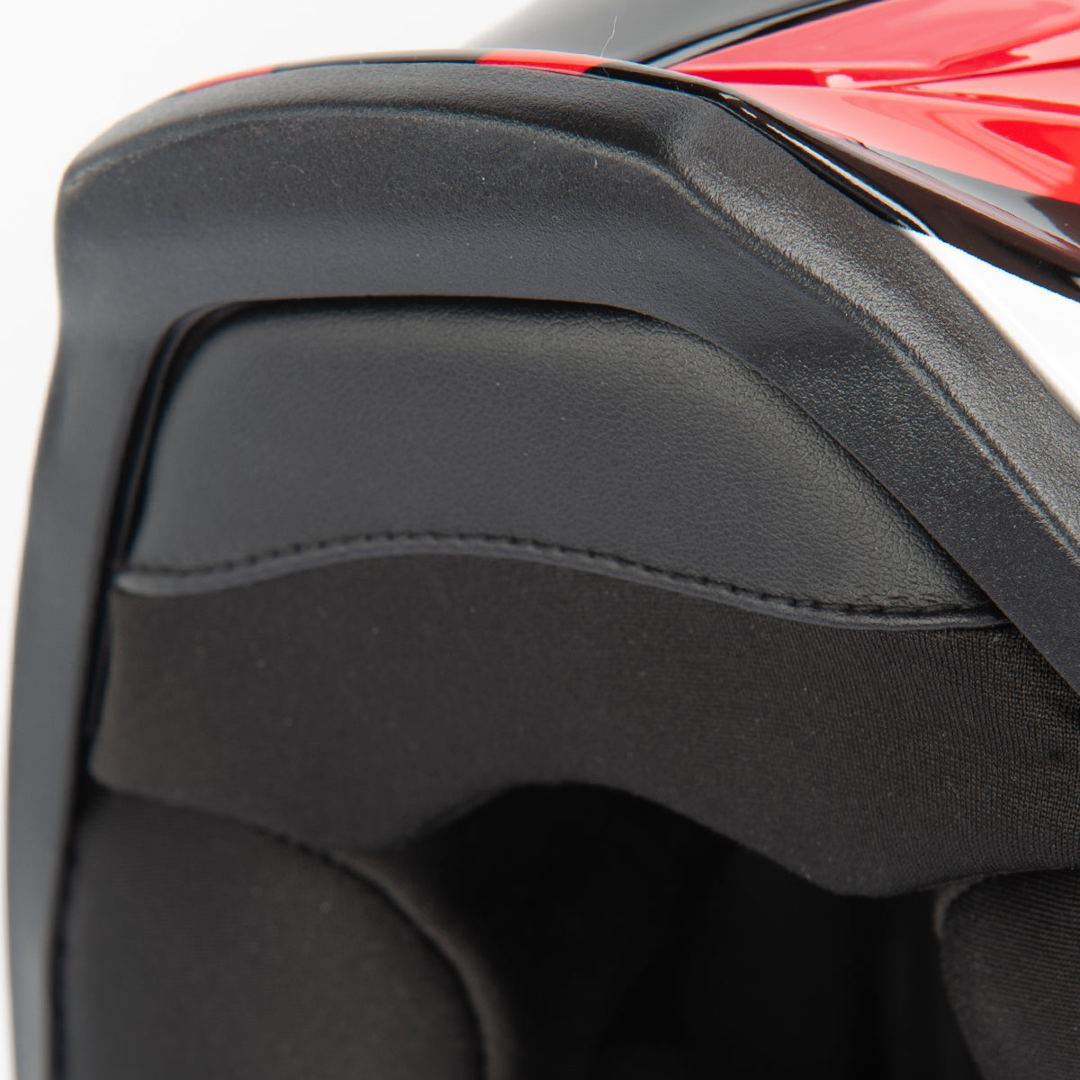 FITTING: OPEN THE CHIN STRAPS AND SLIDE THE HELMET ONTO YOUR HEAD STARTING AT THE FOREHEAD. A HELMET SHOULD FEEL SNUG. IF IT SLIDES ON EASILY IT IS TOO BIG. IT SHOULD FEEL TIGHT TO PULL DOWN. MAKE SURE THE INNER PADDING FITS SNUG ALL AROUND. YOU SHOULD FEEL THE PADDING PRESSING AGAINST YOUR CHEEKS AND HEAD. THE LAST CHECK FOR A PROPER FIT IS TO TEST IF IT MOVES WHILE WEARING, THERE SHOULD BE NO MOVEMENT IF YOU SHAKE YOUR HEAD. PLACE YOUR HANDS ON THE HELMET AND MOVE IT FRONT TO BACK AND SIDE-TO-SIDE. IF THERE IS A LOT OF MOVEMENT, TRY A SIZE DOWN.