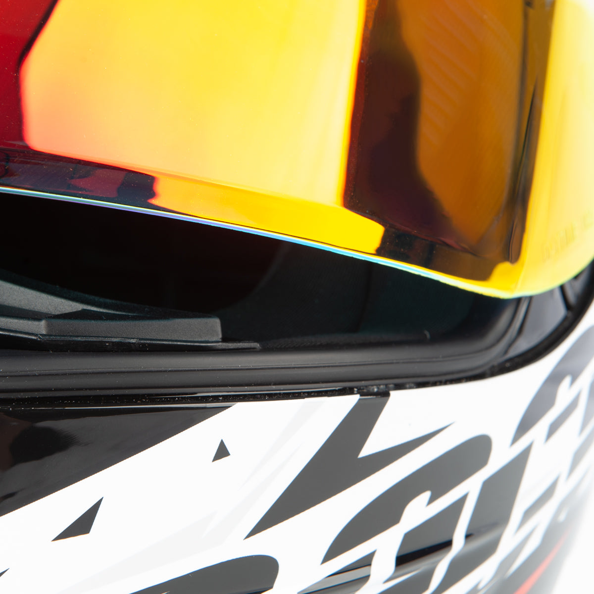 The simple Press-fit Air Lock™ security system locks your shield in place, keeps everything secured at speed and the beveled shield helps to create a more optimal seal. As well as a bonus tint shield, the helmet also comes fitted with an easy to use internal sun visor with extended coverage so that it drops low enough to really help block sun and shield the eyes.