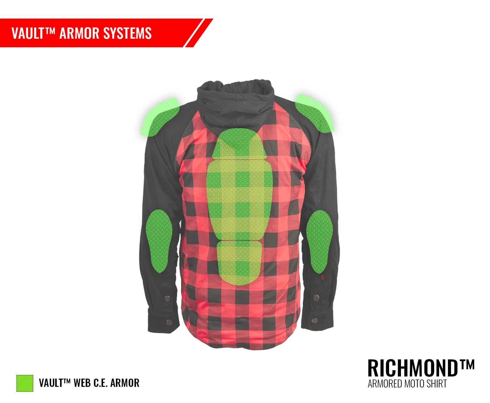 This riding shirt comes fully equipped with removable Vault™ Web C.E. approved level 1 shoulder and elbow protectors, as well as a removable Vault™ Web C.E. approved level 2 spine pad.