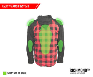 The Richmond™ armored motorcycle shirt from Joe Rocket Canada® is constructed with a 100% cotton outer shell and aramid reinforcements at the shoulders, elbows and back.