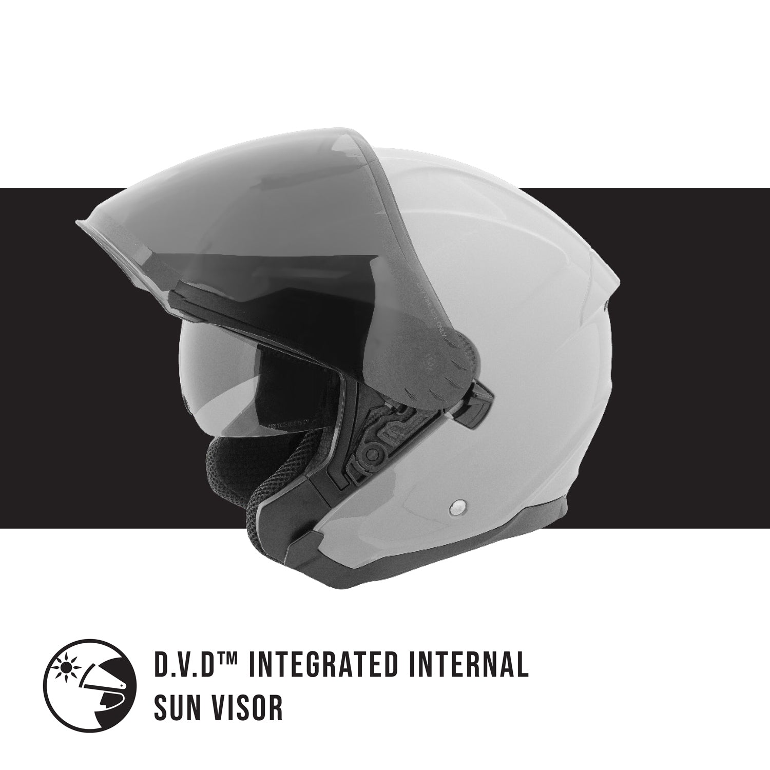 The Solid RKT-70 Series open face jet motorcycle helmet from Joe Rocket Canada® is built with an A.T.P.A.™ Advanced Thermo-Poly Alloy shell that meets or exceeds ECE 22-06 standards. The helmet fits an intermediate oval head shape and includes removable, washable Dry-Tech® moisture wicking liners and cheek pads.