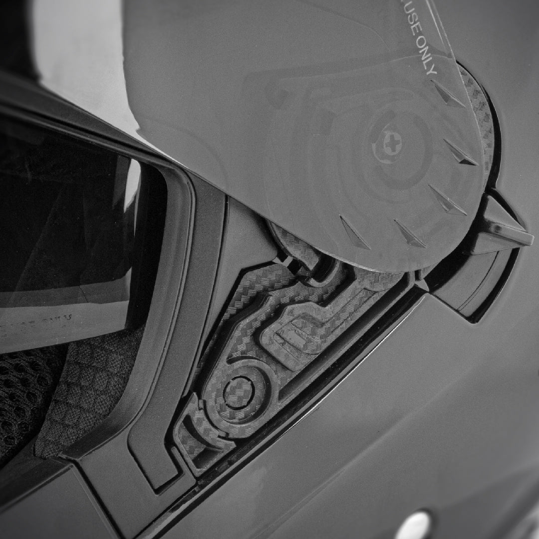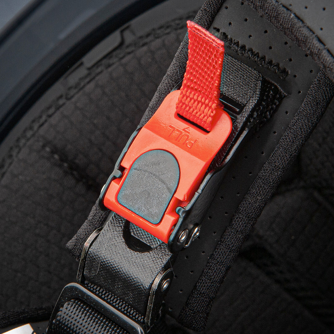 FITTING: OPEN THE CHIN STRAPS AND SLIDE THE HELMET ONTO YOUR HEAD STARTING AT THE FOREHEAD. A HELMET SHOULD FEEL SNUG. IF IT SLIDES ON EASILY IT IS TOO BIG. IT SHOULD FEEL TIGHT TO PULL DOWN. MAKE SURE THE INNER PADDING FITS SNUG ALL AROUND. YOU SHOULD FEEL THE PADDING PRESSING AGAINST YOUR CHEEKS AND HEAD. THE LAST CHECK FOR A PROPER FIT IS TO TEST IF IT MOVES WHILE WEARING, THERE SHOULD BE NO MOVEMENT IF YOU SHAKE YOUR HEAD. PLACE YOUR HANDS ON THE HELMET AND MOVE IT FRONT TO BACK AND SIDE-TO-SIDE. IF THERE IS A LOT OF MOVEMENT, TRY A SIZE DOWN.