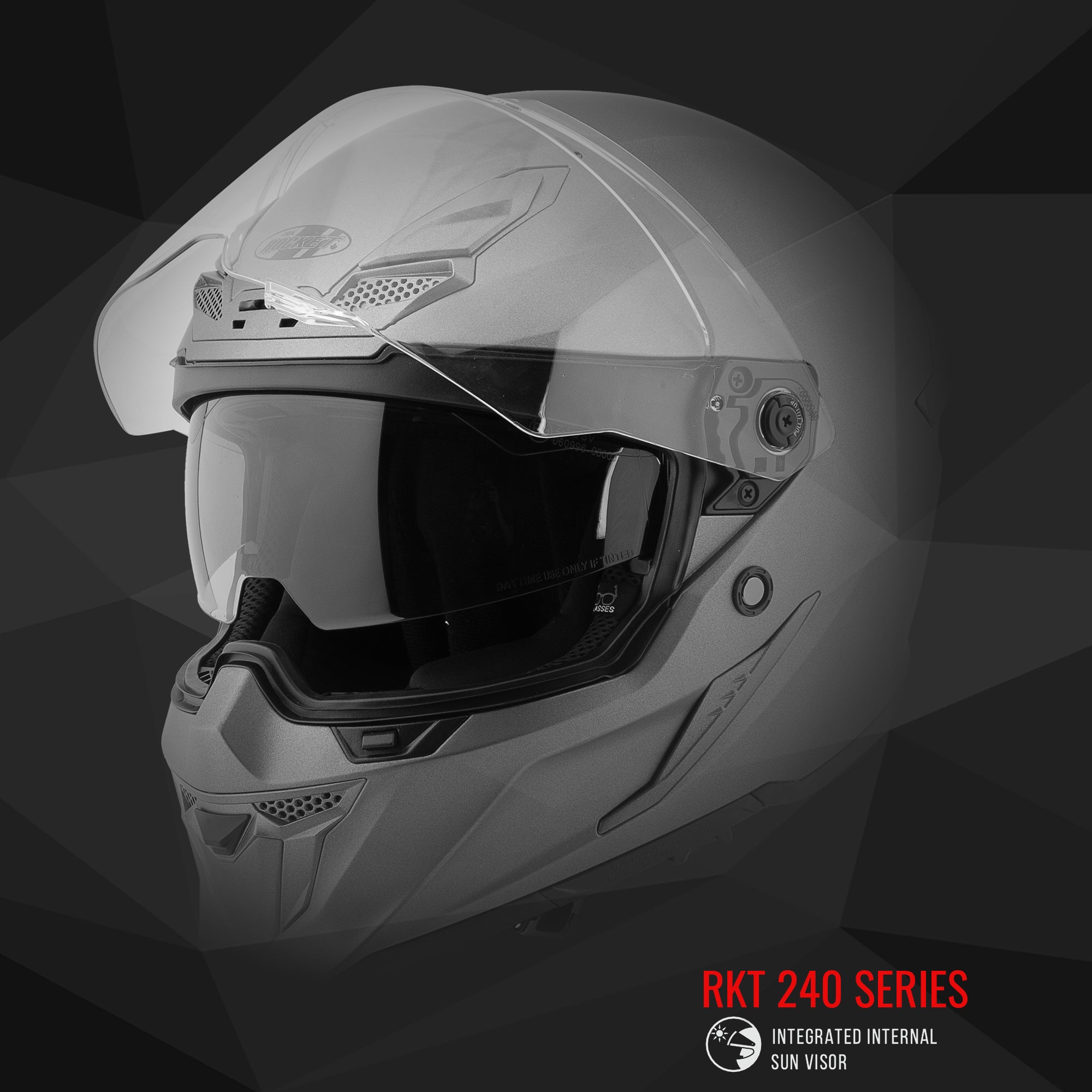 The RKT 240-Series Solid™ full face motorcycle helmet from Joe Rocket Canada® is built with an A.T.P.A.™ Advanced Thermo-Poly Alloy shell that meets or exceeds ECE 22-06 standards.