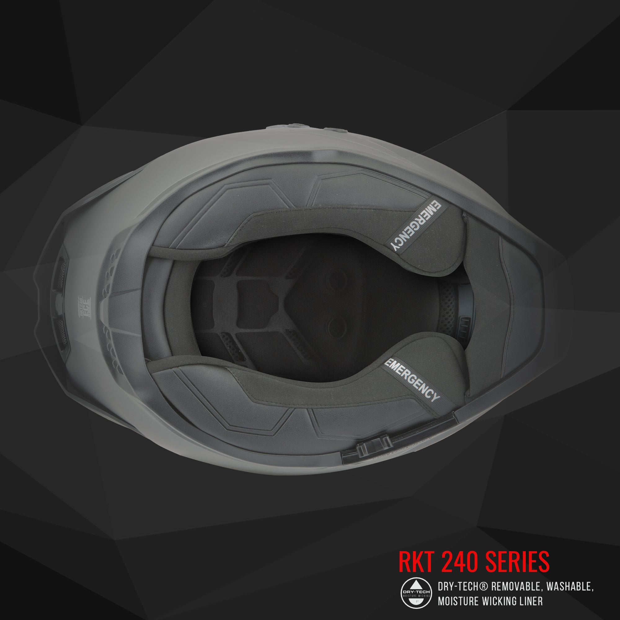 The RKT 240-Series features a Cross Link™ Variable Flow ventilation system with 10 points of ventilation. 6 intake vents in the front the helmet with 4 exhaust vents in the back of the helmet.