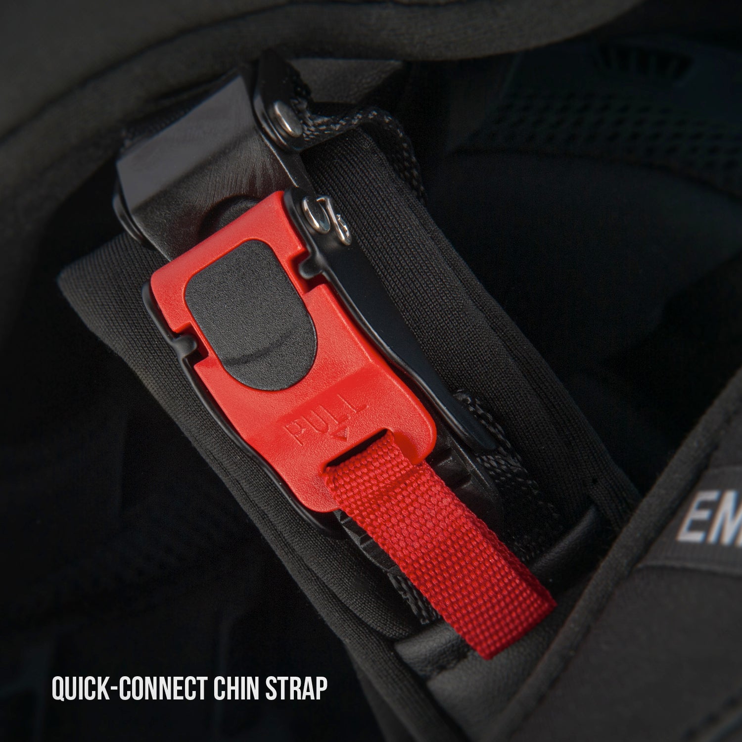 FITTING: OPEN THE CHIN STRAPS AND SLIDE THE HELMET ONTO YOUR HEAD STARTING AT THE FOREHEAD. A HELMET SHOULD FEEL SNUG. IF IT SLIDES ON EASILY IT IS TOO BIG. IT SHOULD FEEL TIGHT TO PULL DOWN. MAKE SURE THE INNER PADDING FITS SNUG ALL AROUND. YOU SHOULD FEEL THE PADDING PRESSING AGAINST YOUR CHEEKS AND HEAD. THE LAST CHECK FOR A PROPER FIT IS TO TEST IF IT MOVES WHILE WEARING, THERE SHOULD BE NO MOVEMENT IF YOU SHAKE YOUR HEAD. PLACE YOUR HANDS ON THE HELMET AND MOVE IT FRONT TO BACK AND SIDE-TO-SIDE. IF THERE IS A LOT OF MOVEMENT, TRY A SIZE DOWN.