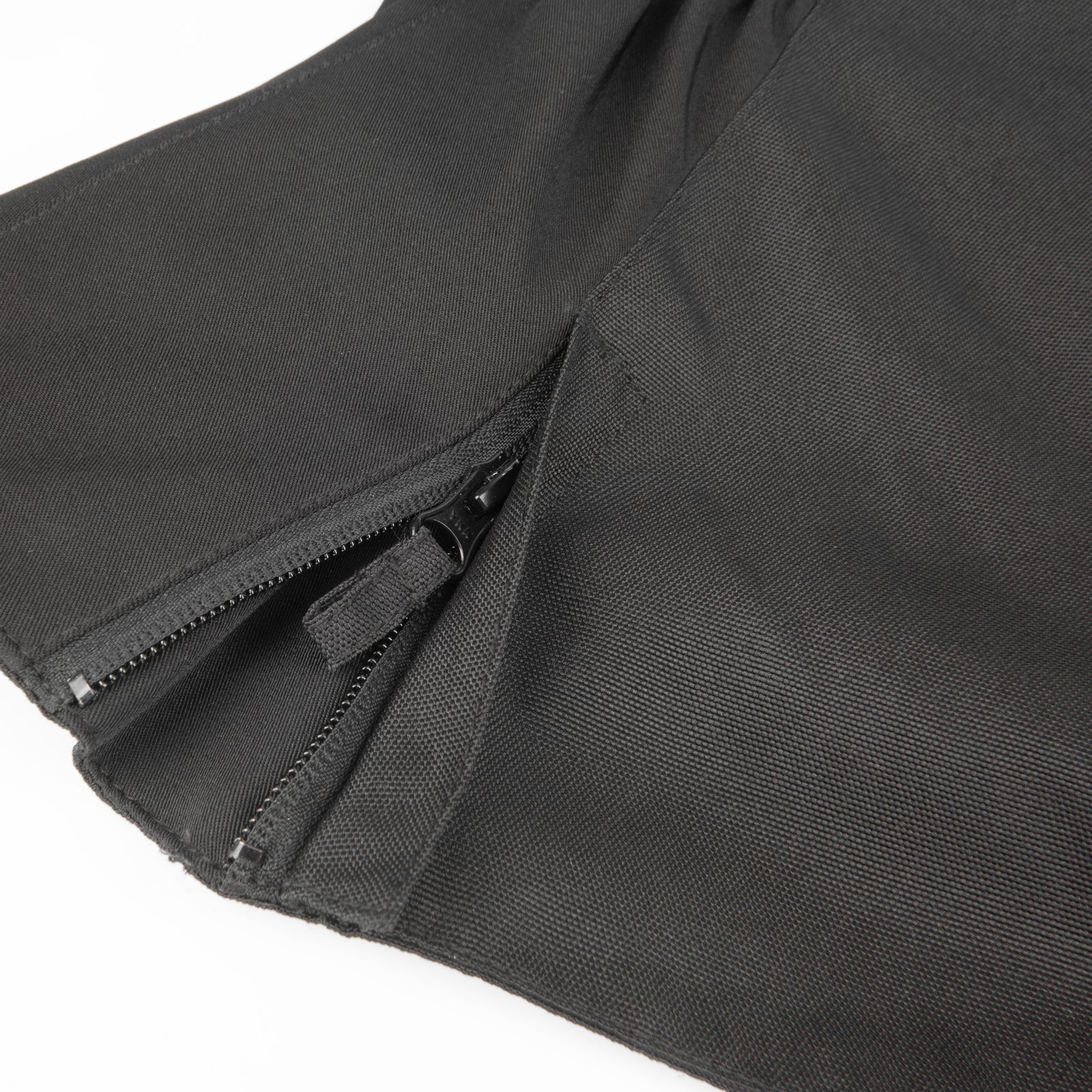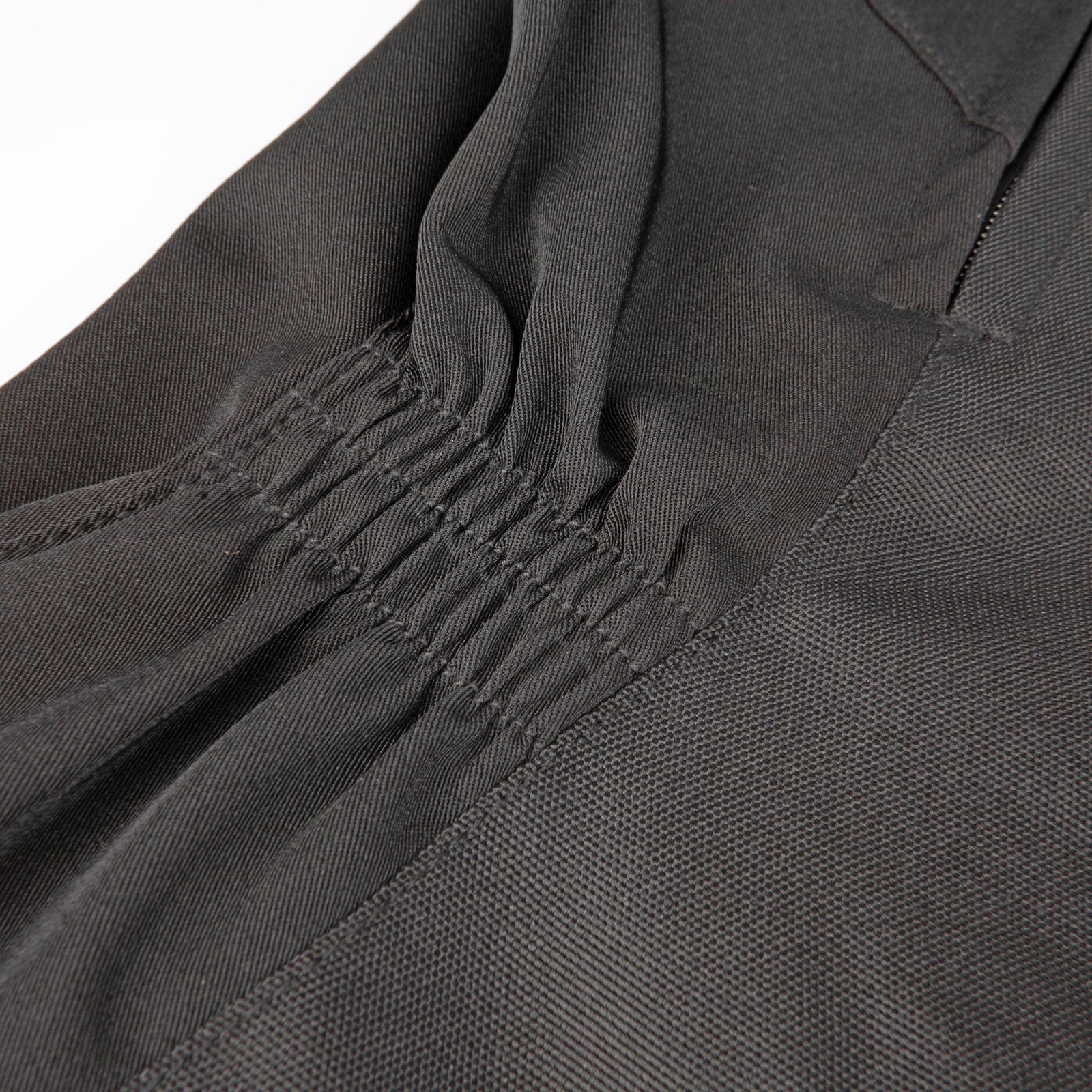 Zippered expansion gussets at the hips allow for an adjustable fit and a flattering elasticized waist