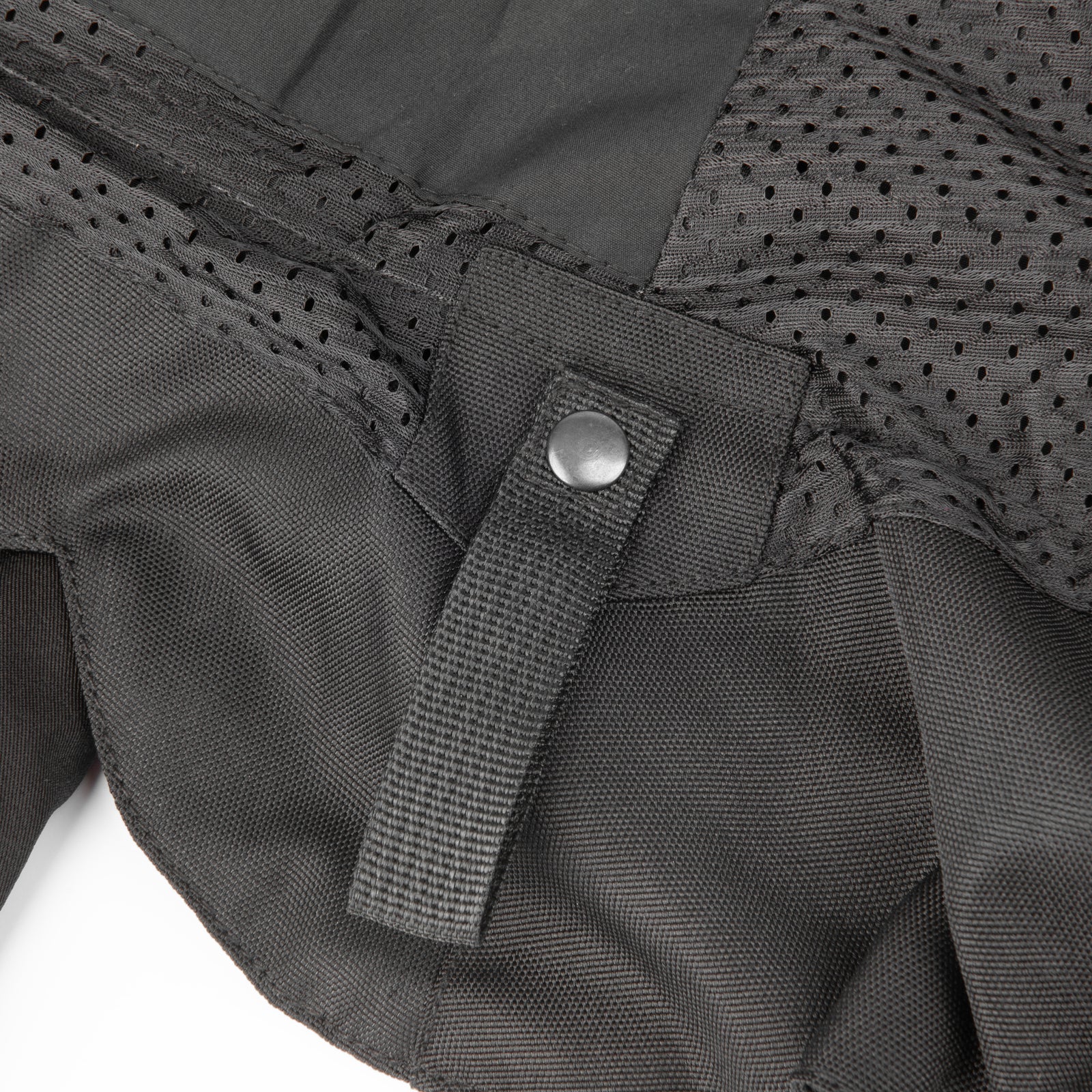 Strap and snap adjusters in the waist and/or sleeves for tightening and loosening fit.