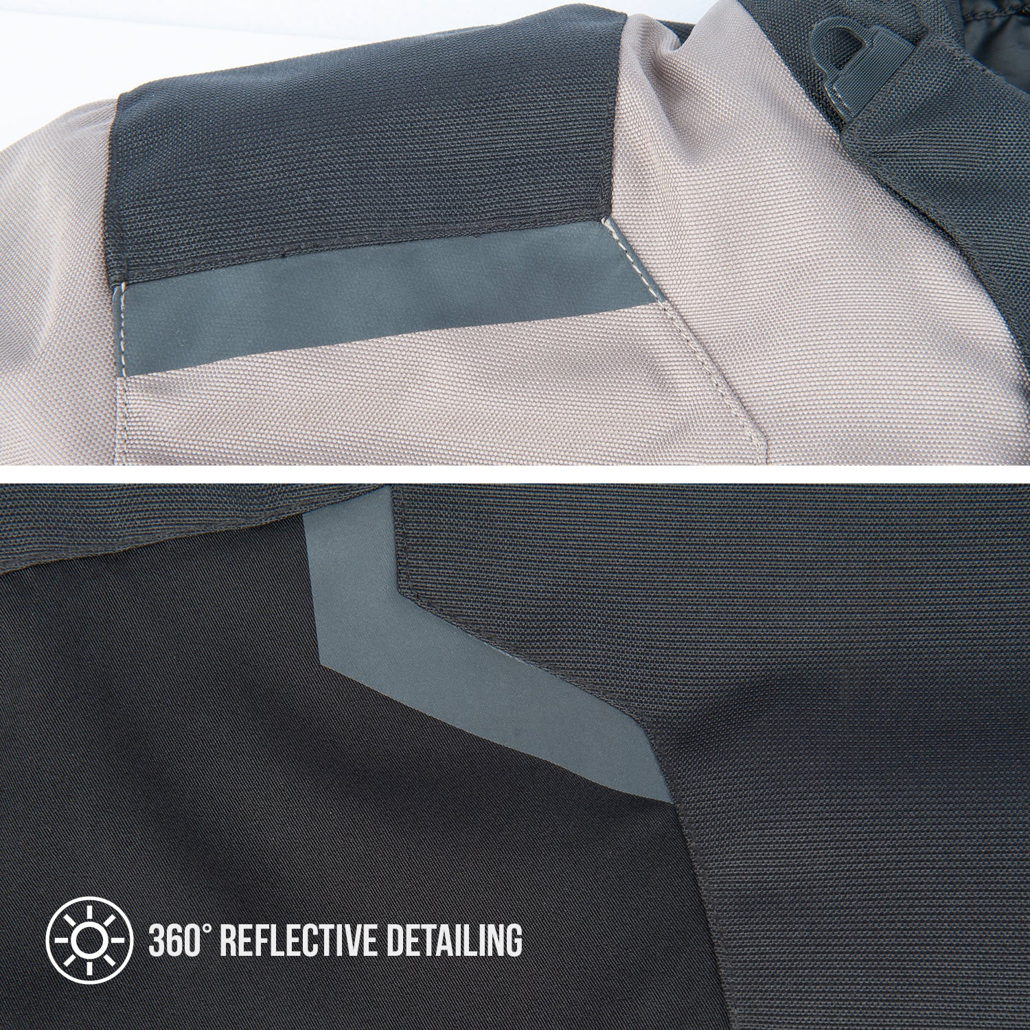 The Ballistic™ 16.0 adventure motorcycle jacket from Joe Rocket Canada® is constructed with a combination Rock Flex™ 900 4-way stretch and Rock Tex™ 600 outer shell that's breathable and waterproof. Rock Tex™ 1000 reinforcement panels are built into high impact areas for added protection and 360° reflective for increased rider visibility.
