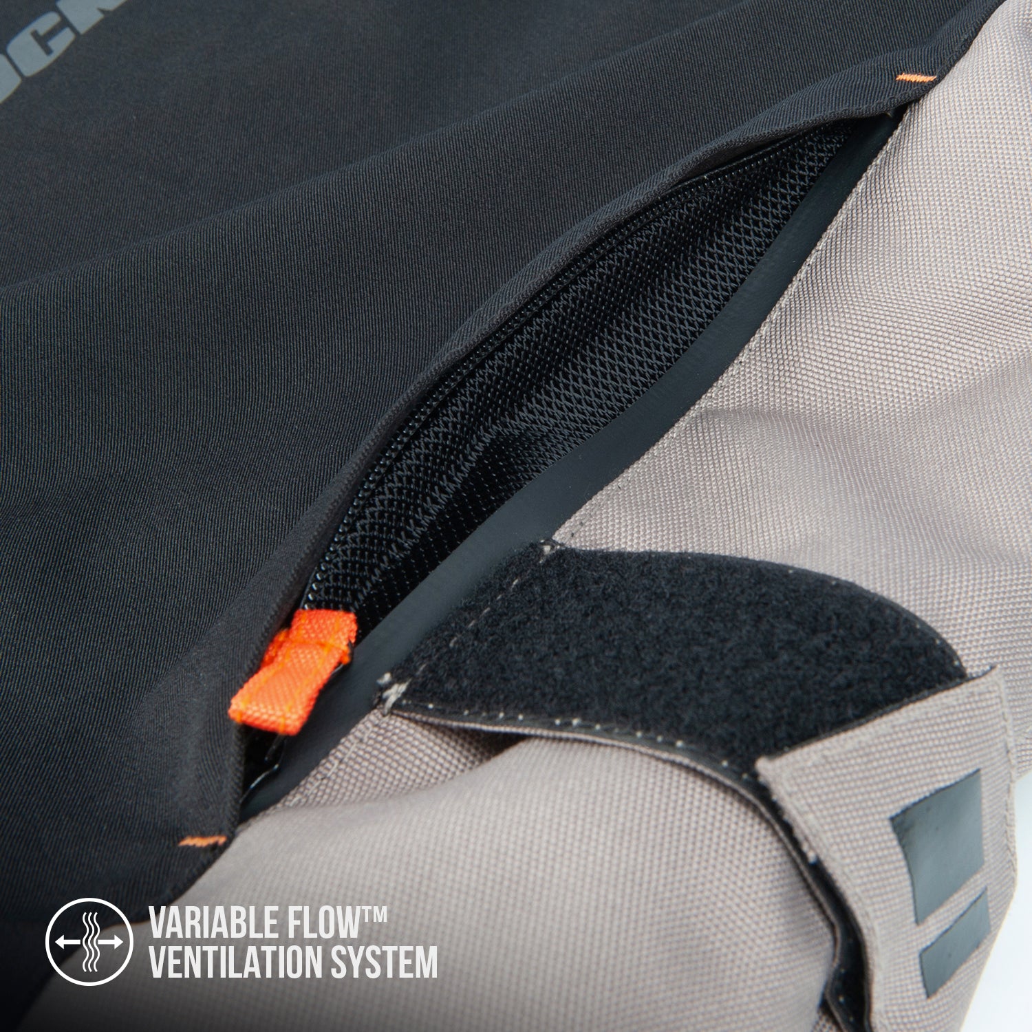 The Variable Flow™ system features 6 points of ventilation with Cross Link™ vents at the front of the jacket that can be held open creating a large intake vent for maximum airflow in warmer climates.