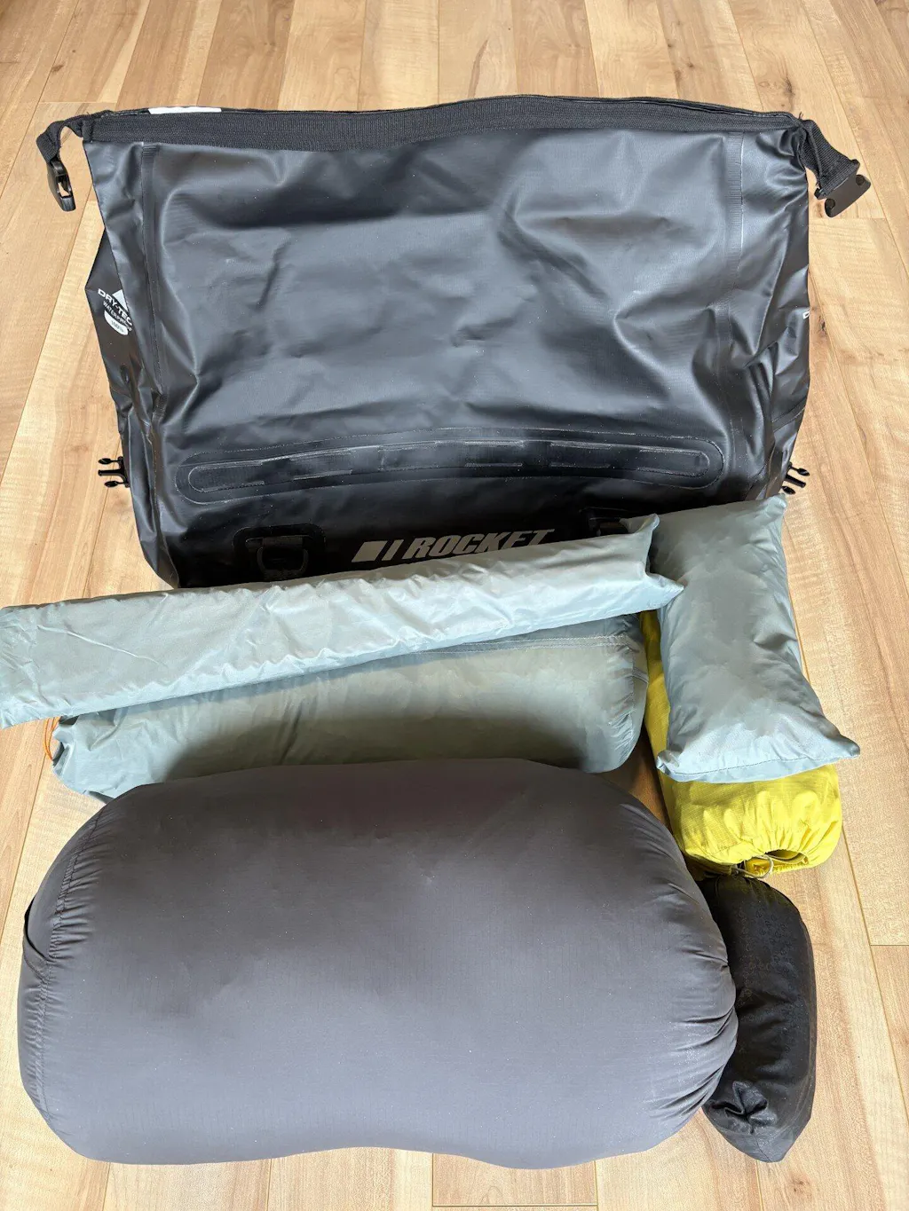 Overall, you just can't go wrong with this for a tail bag. It fit my tent, sleeping bag, spare clothes, food and a few odds and ends.